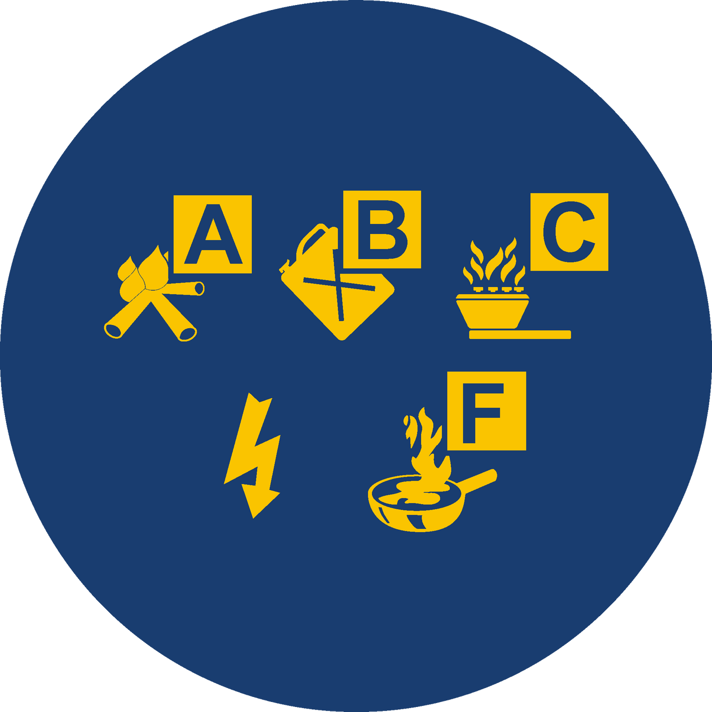 Certified to tackle: A (Flammable Materials) B (Flammable Liquids) C (Flammable Gases) Electrical (up to 100,000v) & F (Cooking Oils & Fats).