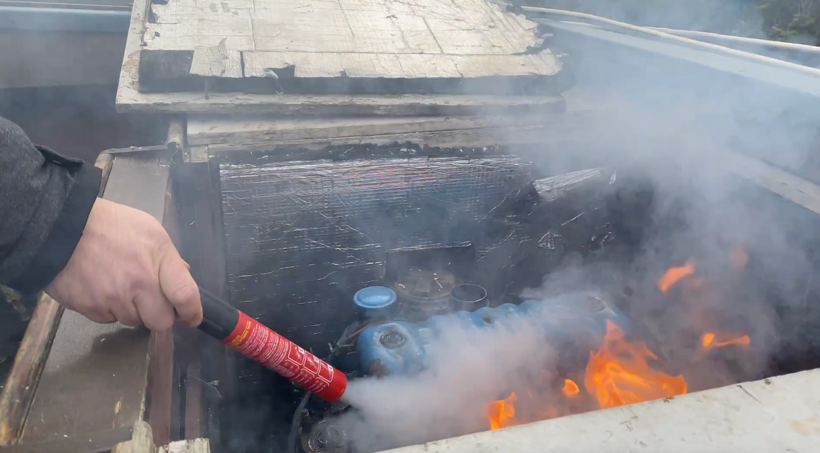 Unlike a dry chemical extinguisher that combats a blaze by depositing a large amount of solid powder on the fire, the Fire Safety Stick fights fire by releasing Nitrogen dioxide (78% of our atmosphere is nitrogen gas) and the active agent, Potassium Free Radicals. This potassium ion attaches itself to the oxygen surrounding the fire robbing its ability to stick to the chain of combustion (without affecting one's ability to breathe that oxygen). The goal is therefore to use the discharge coming out of the FSS to create a ‘cloud of containment’ around a fire. Creating a cloud that prevents any outside and unattached oxygen from getting to the fire is essential and is the same strategy that should also be used with a Halon/Halotron or CO2 extinguisher. The best technique is to take advantage of the long discharge time offered by the Fire Safety Stick and to approach a fire from a moderate distance progressively getting closer to its source. During the approach, move the FSS slowly around the fire always directing it towards the centre, already it will be suppressing the fire from that distance. This will contain the fire and allow the active agent the ability to work. Tight areas with lots of pockets (like the engine bay of a car for example) brings out the strengths of the FSS as the gas, will fill all the voids not directly accessible; both putting out a fire and preventing a re-flash.